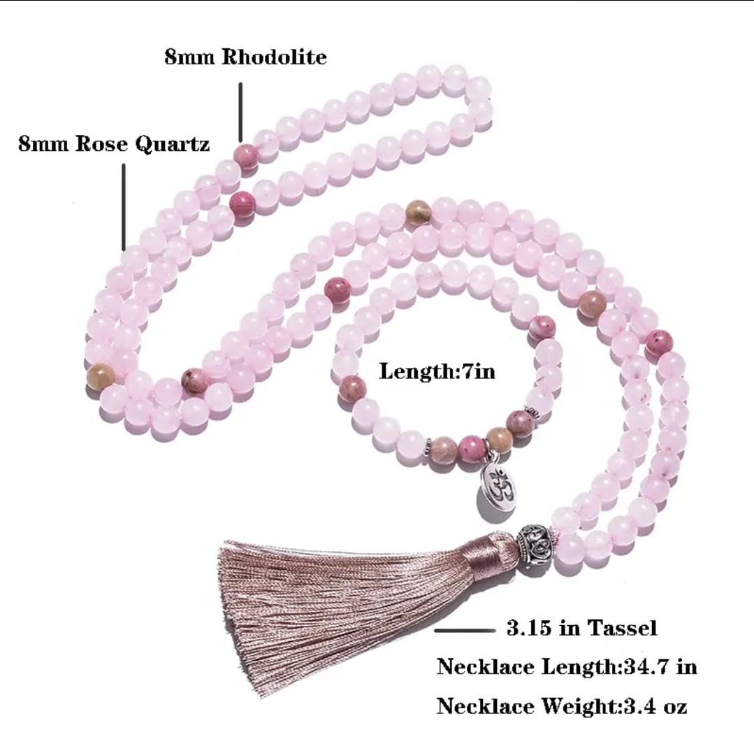 طقم القلادة البوهيمية من الكوارتز الوردي والرودوليت (8 مم): همسة حب وسلام.. تلامس روحك